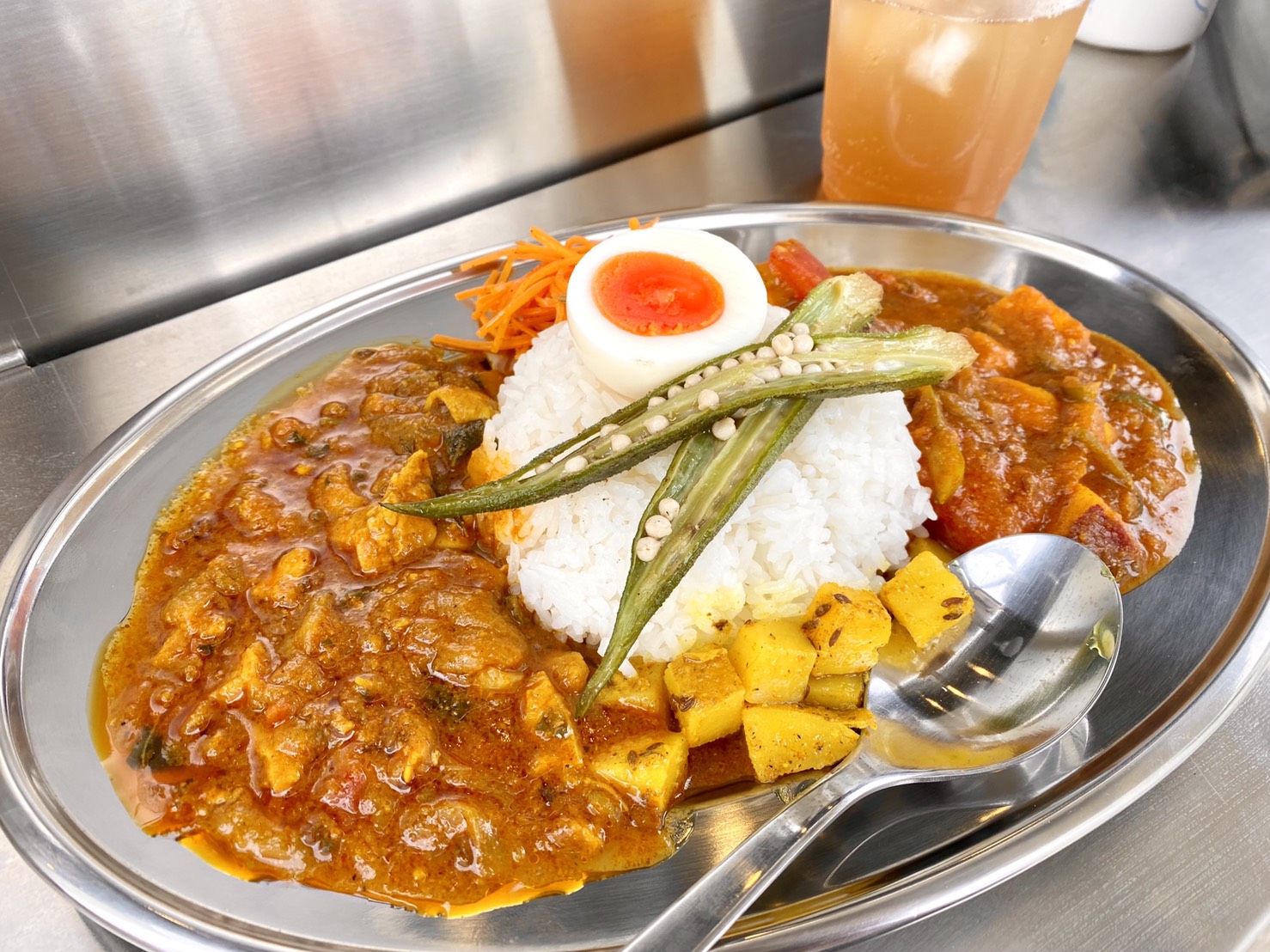 米沢産のお野菜をたっぷり使った甘口の優しいカレーです!米沢産の紅東(サツマイモ)やヤングコーンの食感も◎